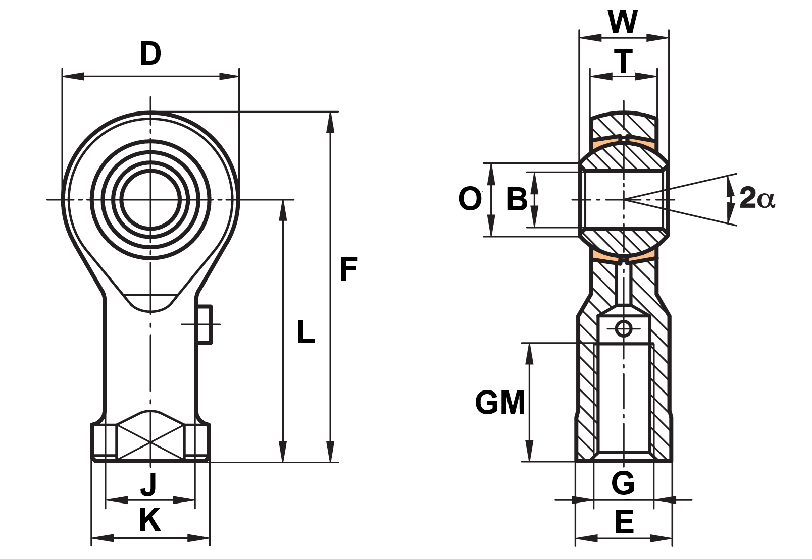 - GIS Series – Rod end with internal thread made of free-cutting steel or heat-treatable steel, zinc-plated, lubricated via concave spherical grease fitting. Designed for use at higher rotational speeds.