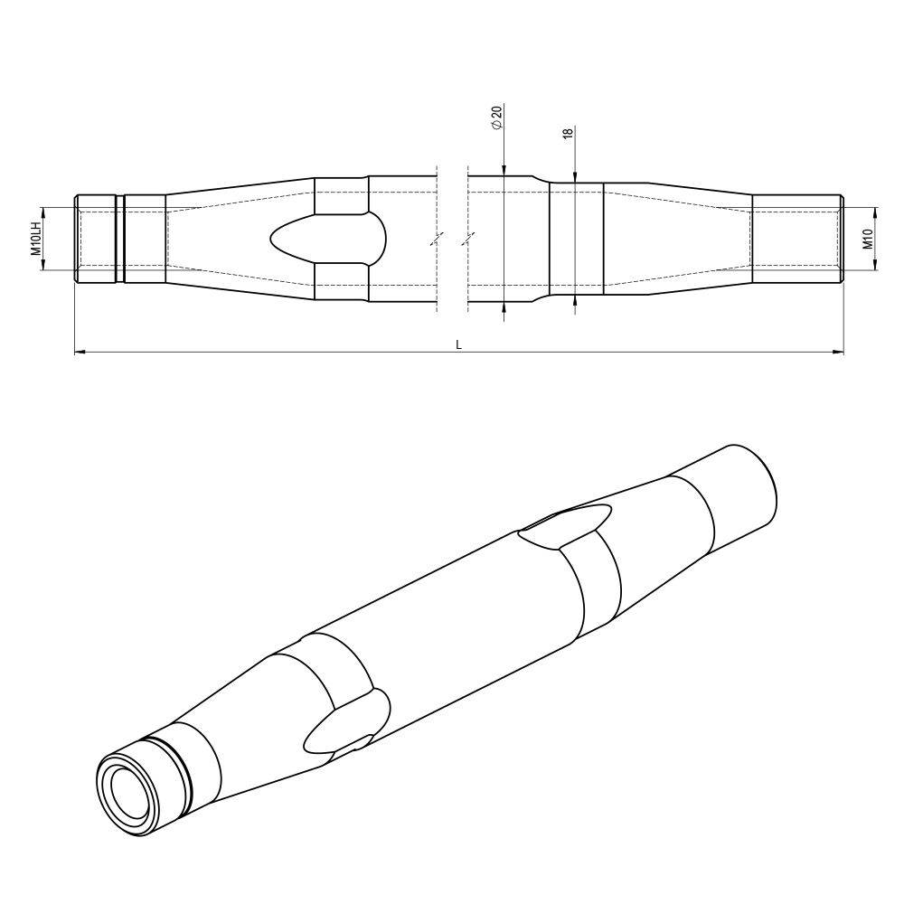Bras / Tube en Acier, Fileté des Deux Côtés – M20x1.5 - (306-336 / 12,05" - 13,23") + Uniball
