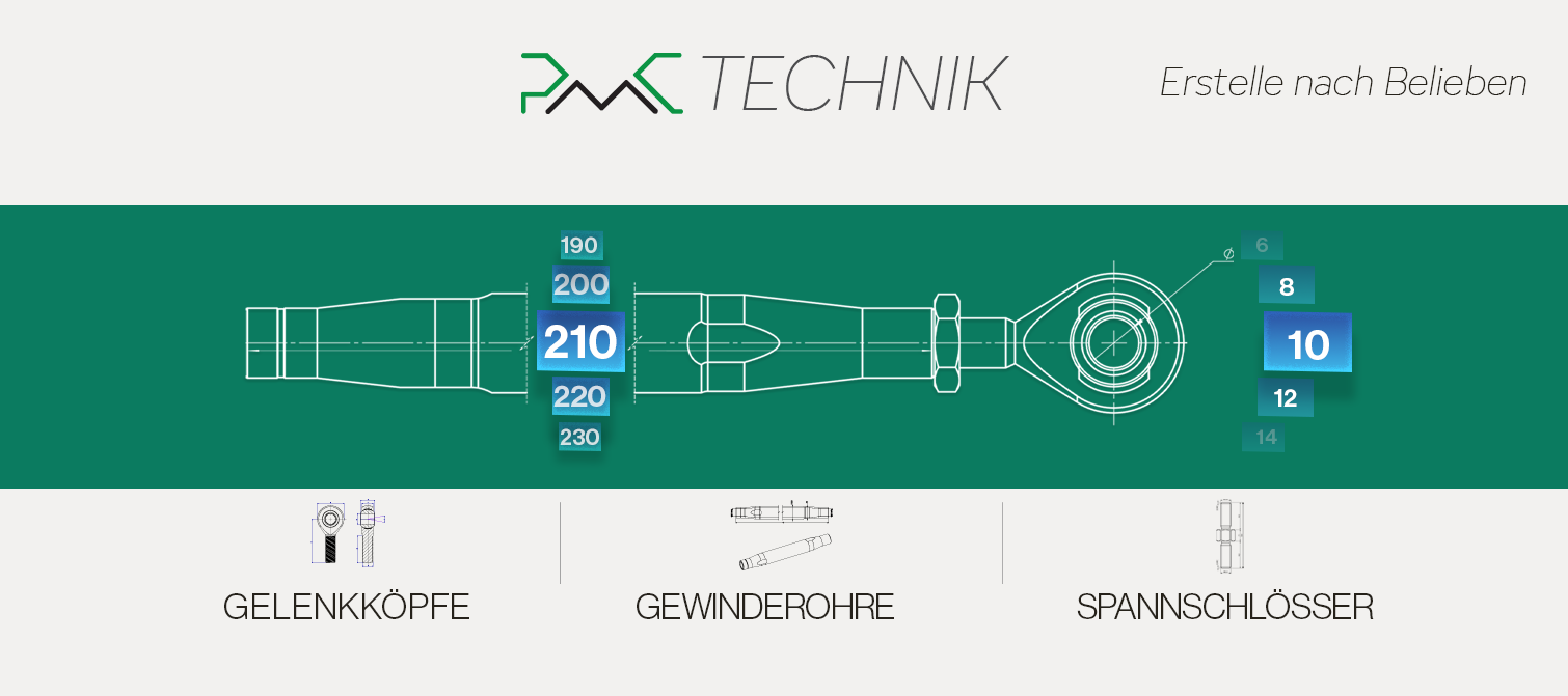 Egal, ob Sie eine kundenspezifische Aufhängungsverbindung oder einen verstellbaren Querlenker bauen, der Gewinde-Stahlarm von PMC Technik bietet die Festigkeit und Zuverlässigkeit, die Sie benötigen.