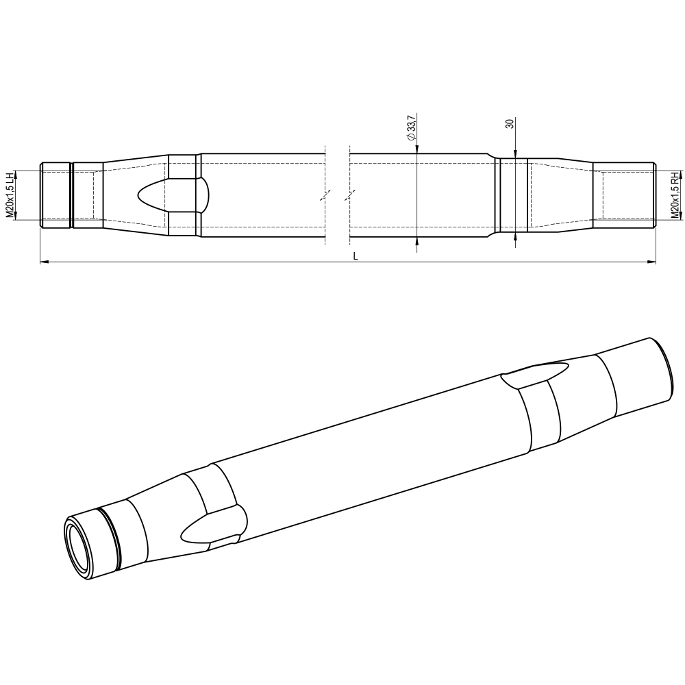 PMC technik ramię / rura stalowa obustronnie gwintowana – M20x1.5 (prawy / lewy)