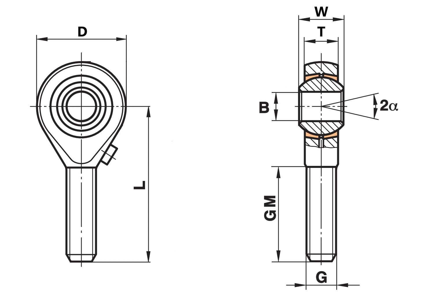 - Ponta de tirante / cabeça de articulação – uniball GALRS 22 FLURO – M22x1.5 rosca externa esquerda (macho)